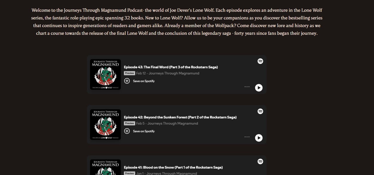 That story is far better told during the podcast (Journeys Through Magnamund), to be honest. In a nutshell, Joe Dever was looking for someone in 2006 to help him turn Lone Wolf into a full roleplaying game.